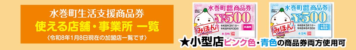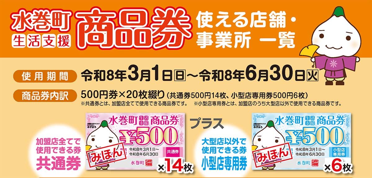 ・本事業の実施は「水巻町生活支援商品券」発行事業約款の定めるところによります。